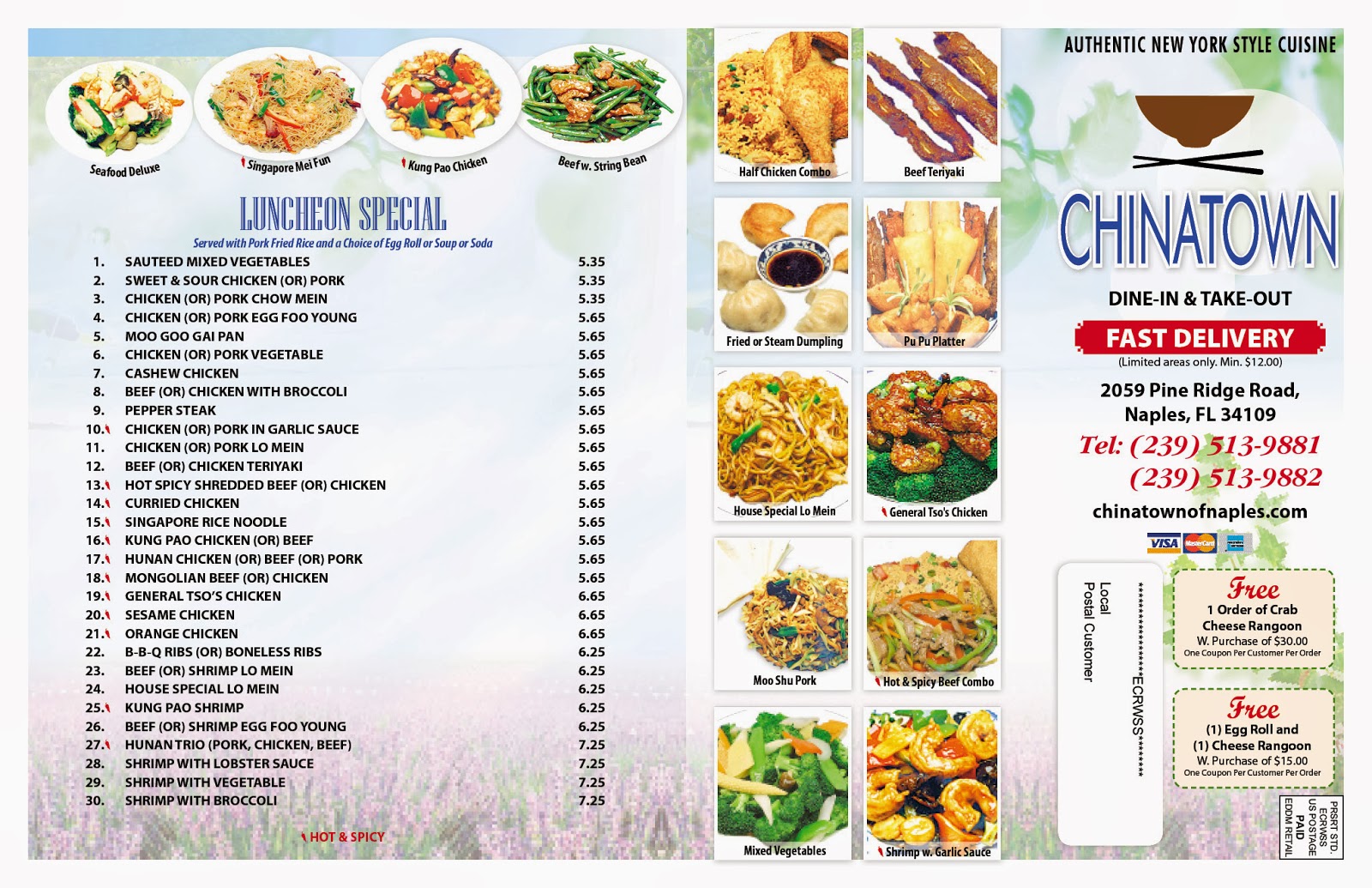 Requests for additional items or special preparation may incur an extra charge not calculated on your online order. Whenever chinese food holds a craving chinatown is always the answer. it was my first ever visit. Thank you for visiting our home page. See expert intros with pictures. Please contact the restaurant directly for updated info.